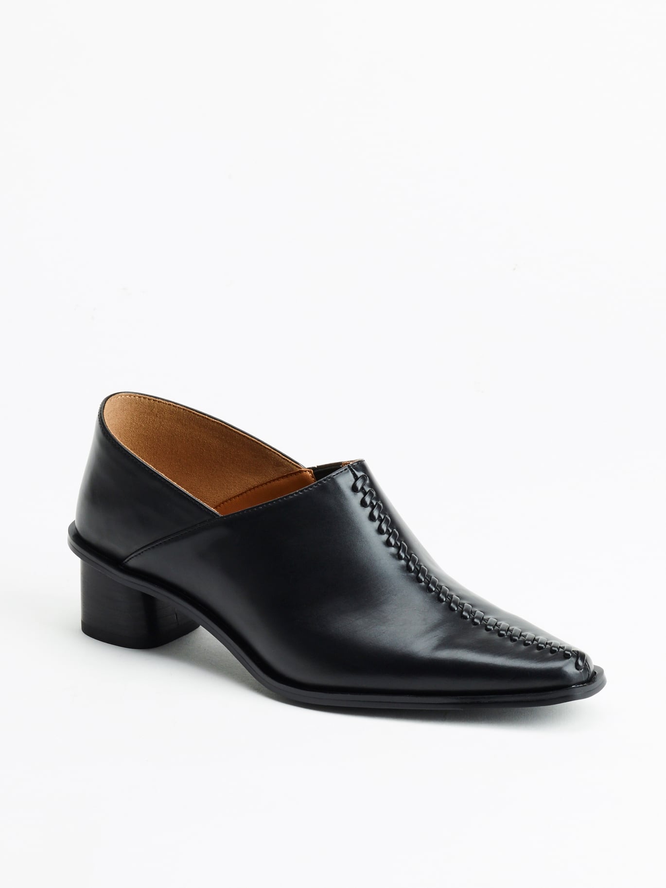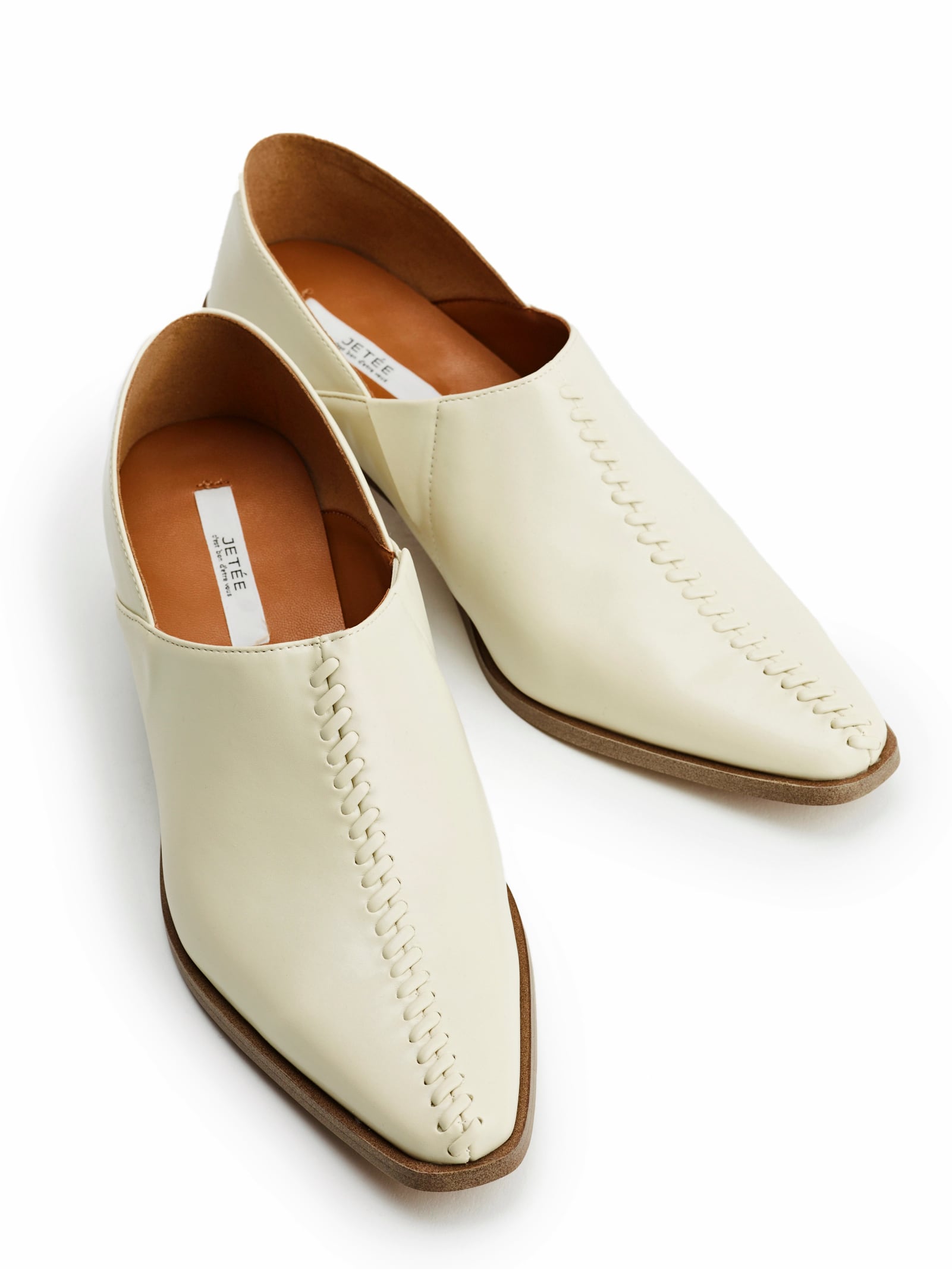 甲部分にあしらった、かがりデザインが目を惹く1足。