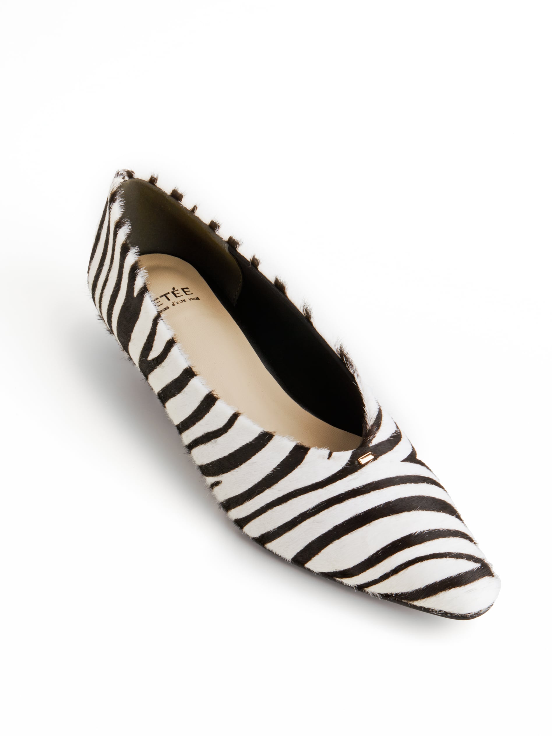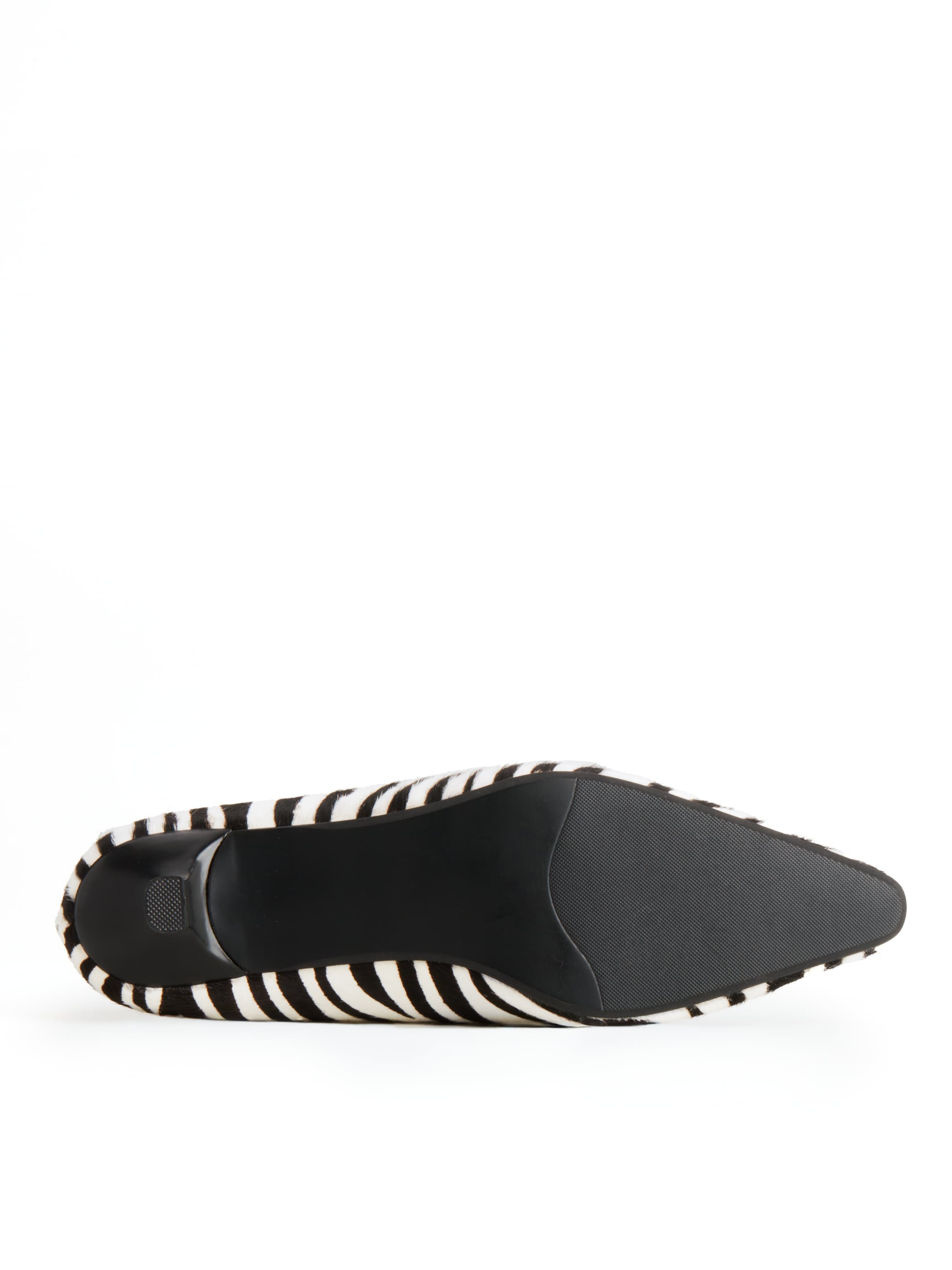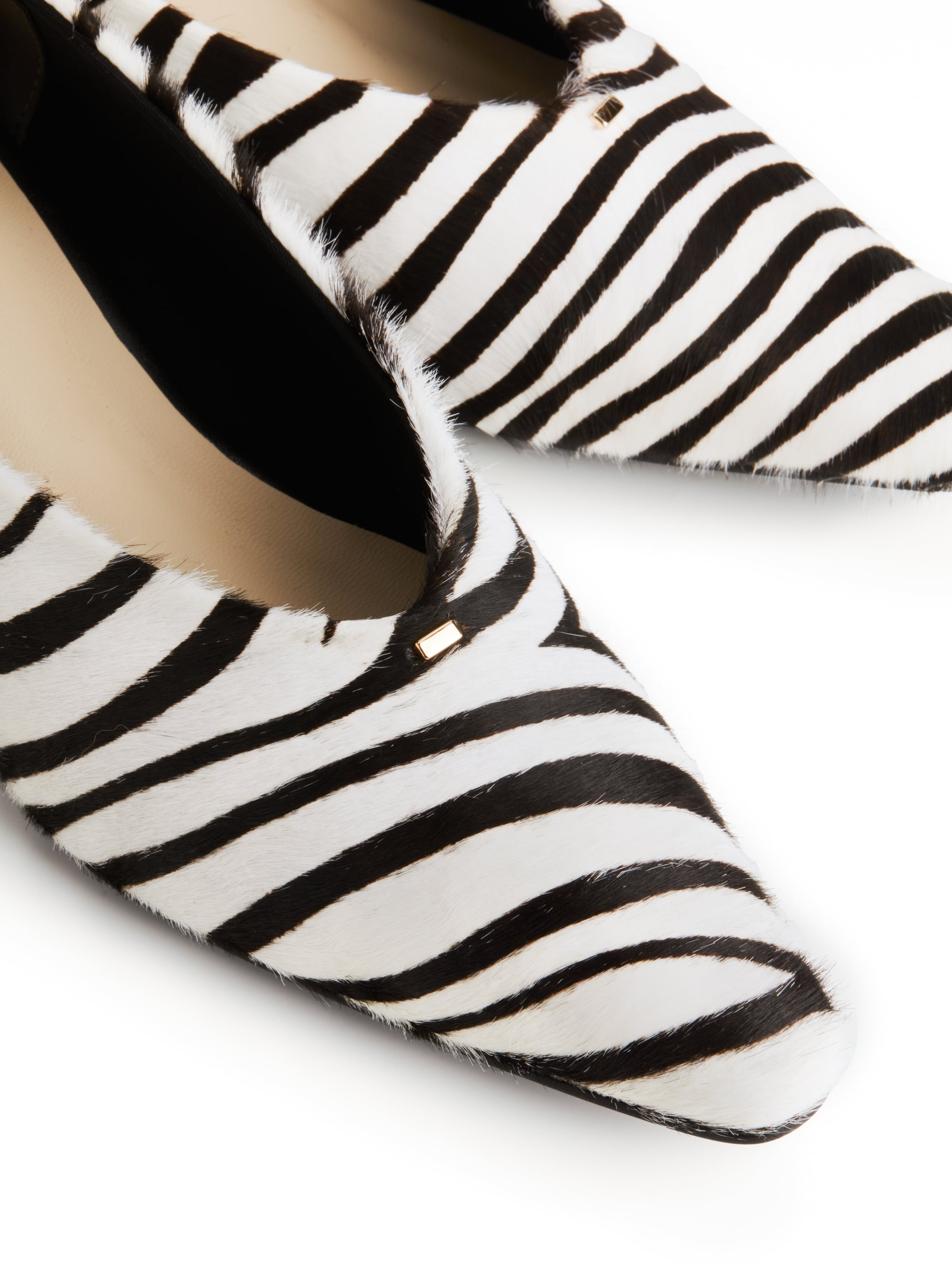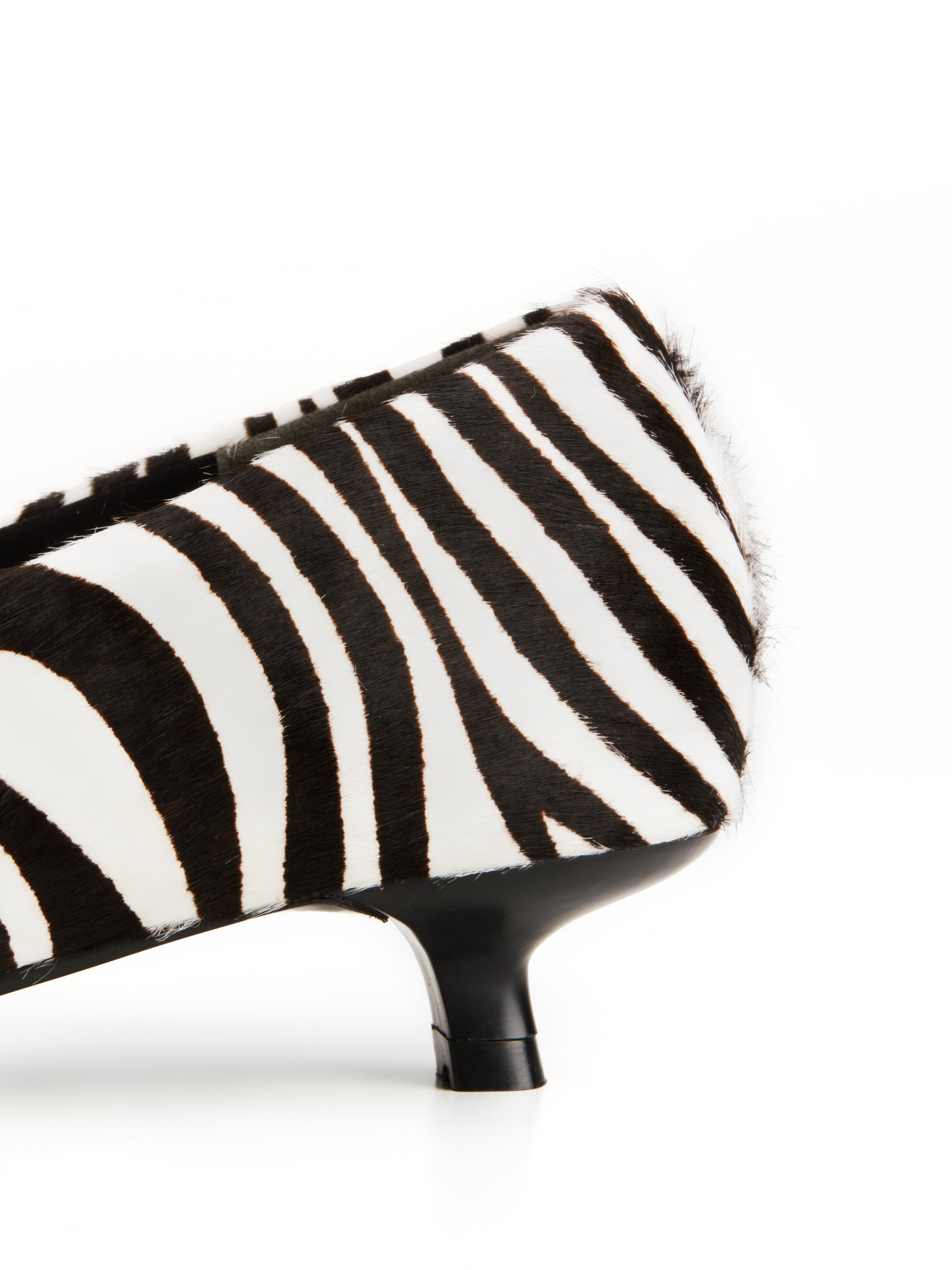 ゼブラ柄のポニーヘアを使用したパンプス。